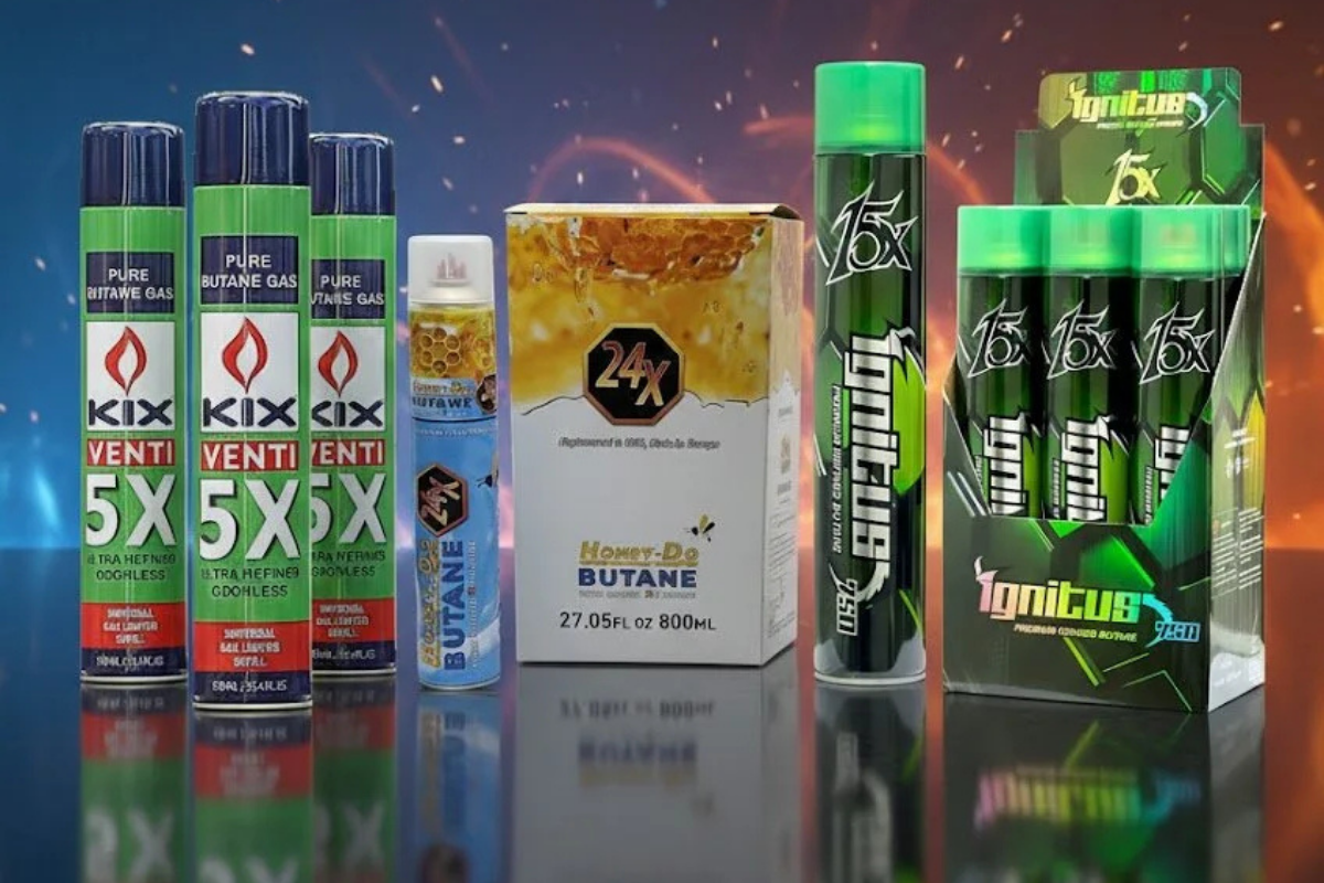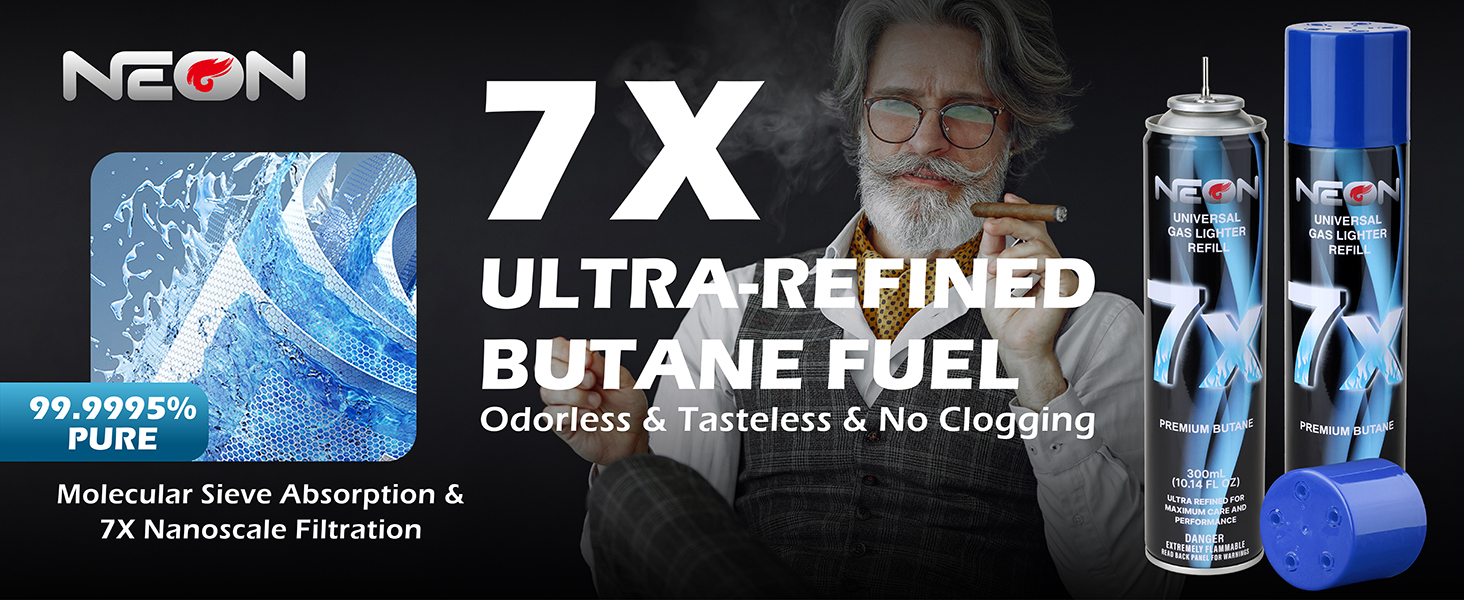We stock refined butane (5x, 7x, 11x, etc.). The more times the gas is refined, the fewer impurities it contains. High-purity butane prevents your lighter valves from clogging and ensures a cleaner, hotter burn.