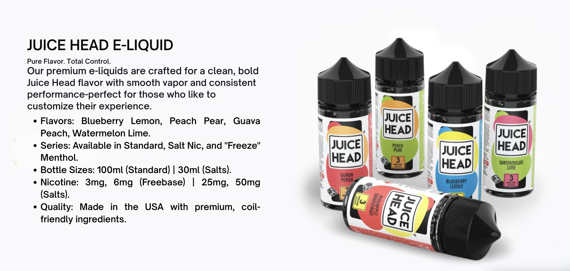 Bottle Sizes: 30ml (Salts) / 100ml (Freebase)