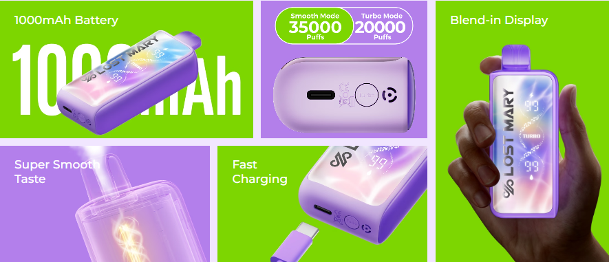 The Lost Mary Ultrasonic 35K is a high-capacity disposable vape device engineered for extended use. It offers up to 35,000 puffs in Normal Mode and around 20,000 puffs in Boost Mode, powered by a built-in 800 mAh rechargeable battery with USB-C fast charging.